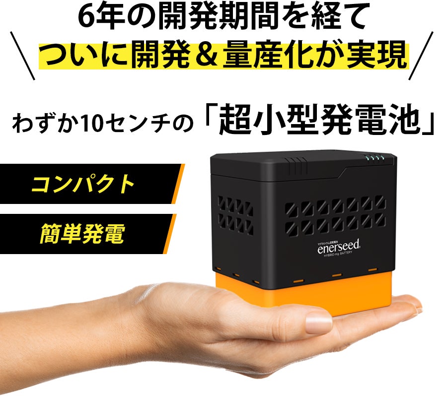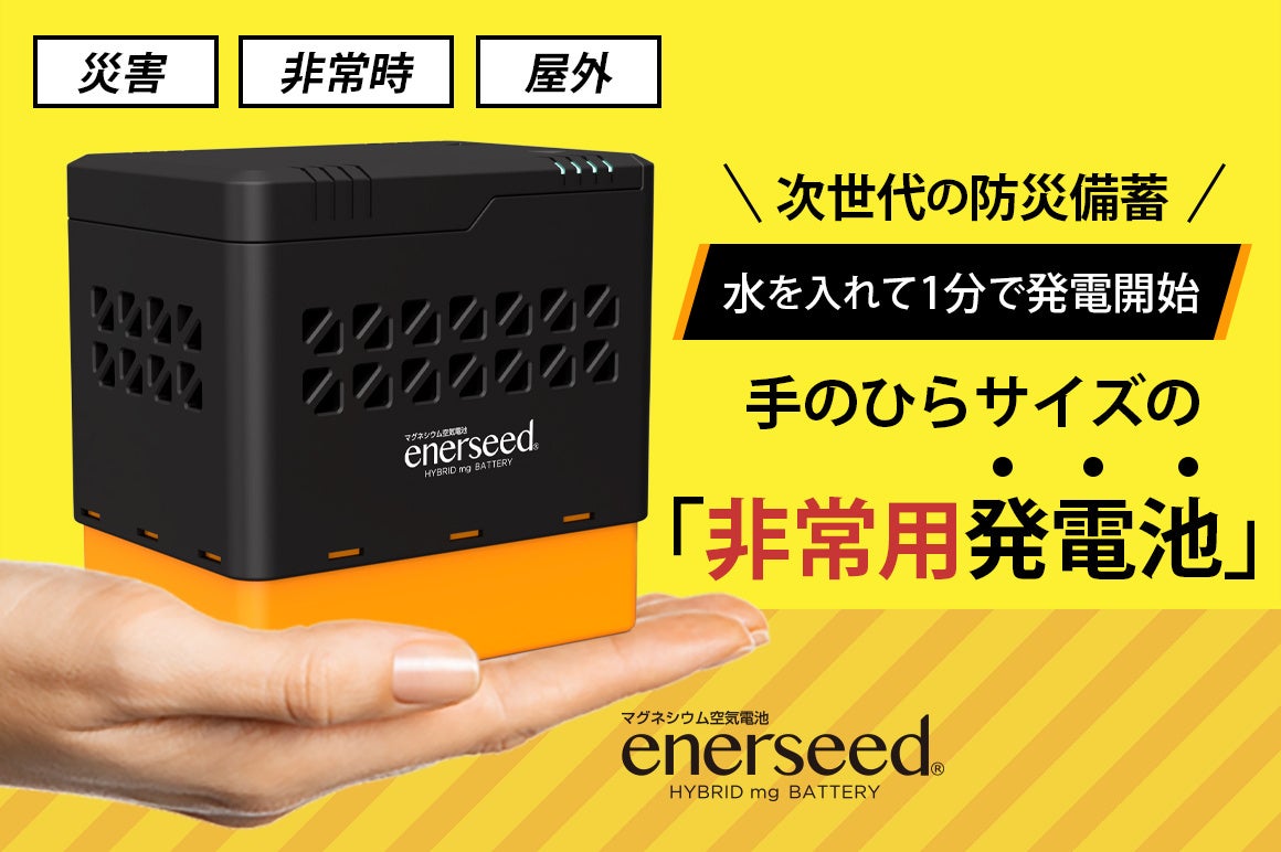 【少しの水と空気だけで発電する次世代の防災備蓄】非常用発電池「エネルシード」クラウドファンディングでは先行予約受付中!