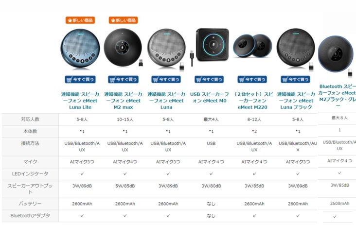 eMeet Luna スピーカーフォン グレーhttps://www.amazon.co.jp/dp/B087FNWSZF