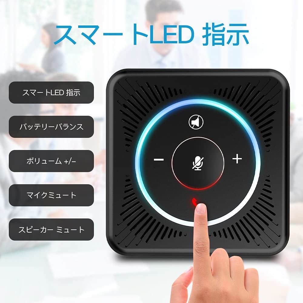 - 話している人の方向を自動的に検知して集音力を個別に高めクリアに集音してくれる「位置検出機能」を搭載。本体のLEDが光って検知している方向を一目で把握できます。また「オートゲインコントロール」機能により発言者の距離を自動的に検知、一定音量に増幅するので参加者の音声をクリアに拾い上げます。