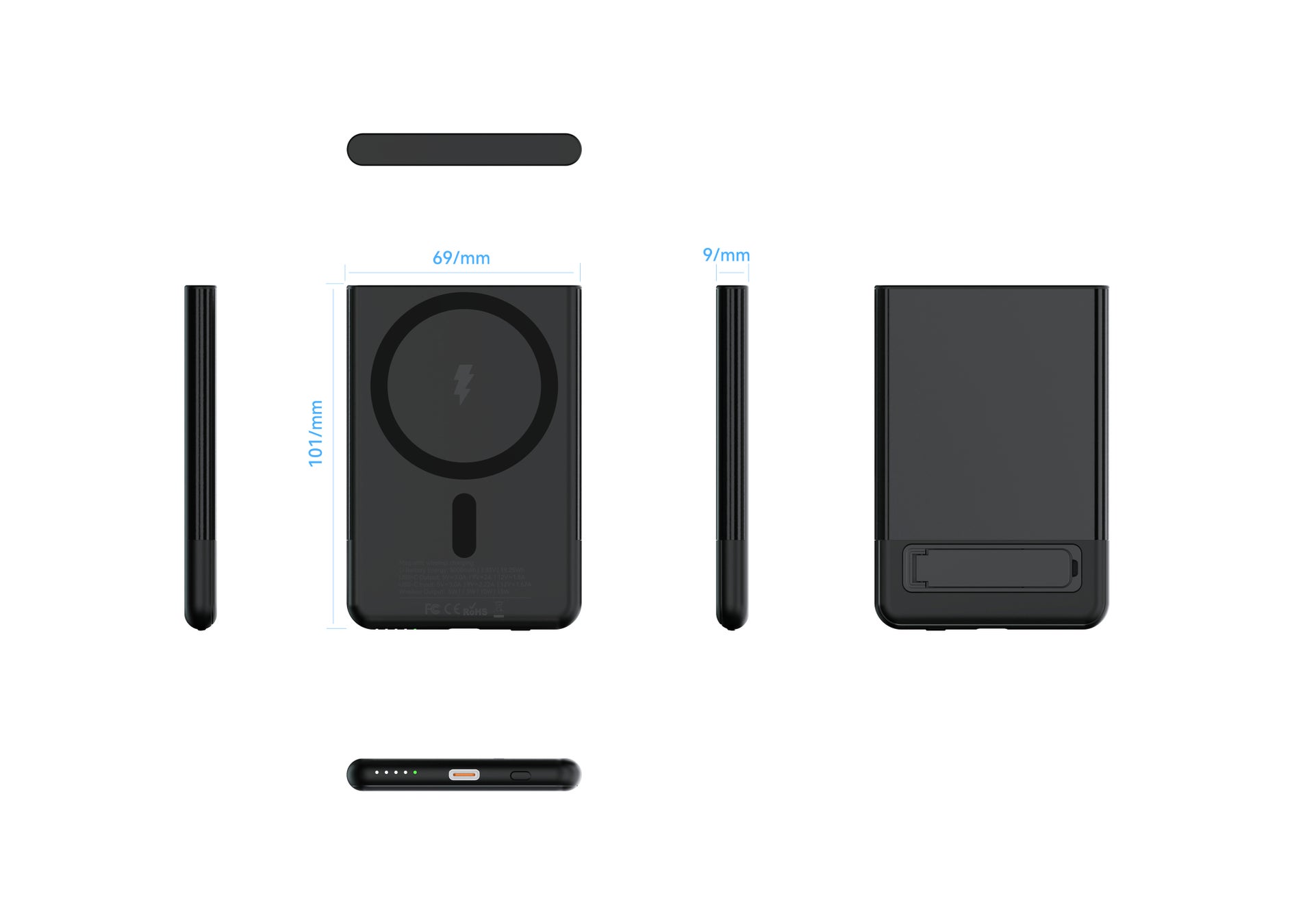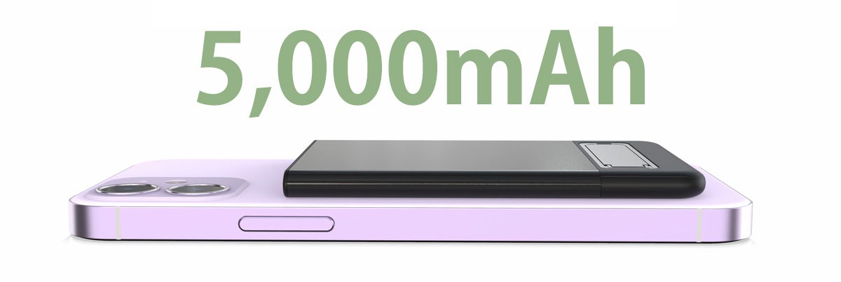 容量と薄さの両方を限界まで追求したいという思いから、最新の製造技術を駆使してエネルギー密度を大幅に向上させました。わずか9mmの薄さ、124gの軽さで5000mAhの容量を実現しました。