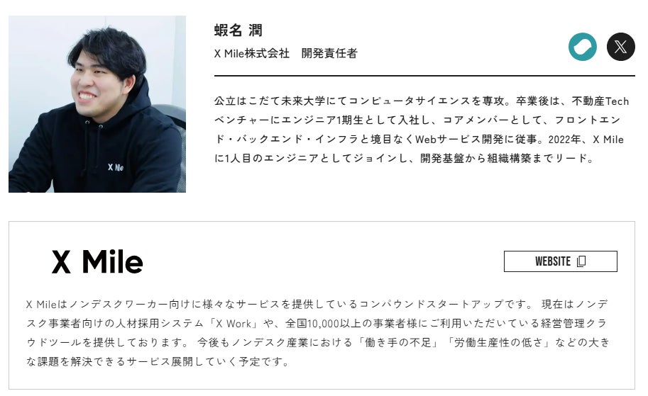 ・エンジニア採用情報:https://recruit-xmile.notion.site/X-Mile-812097f723a74632ad23d86f7219d0e4