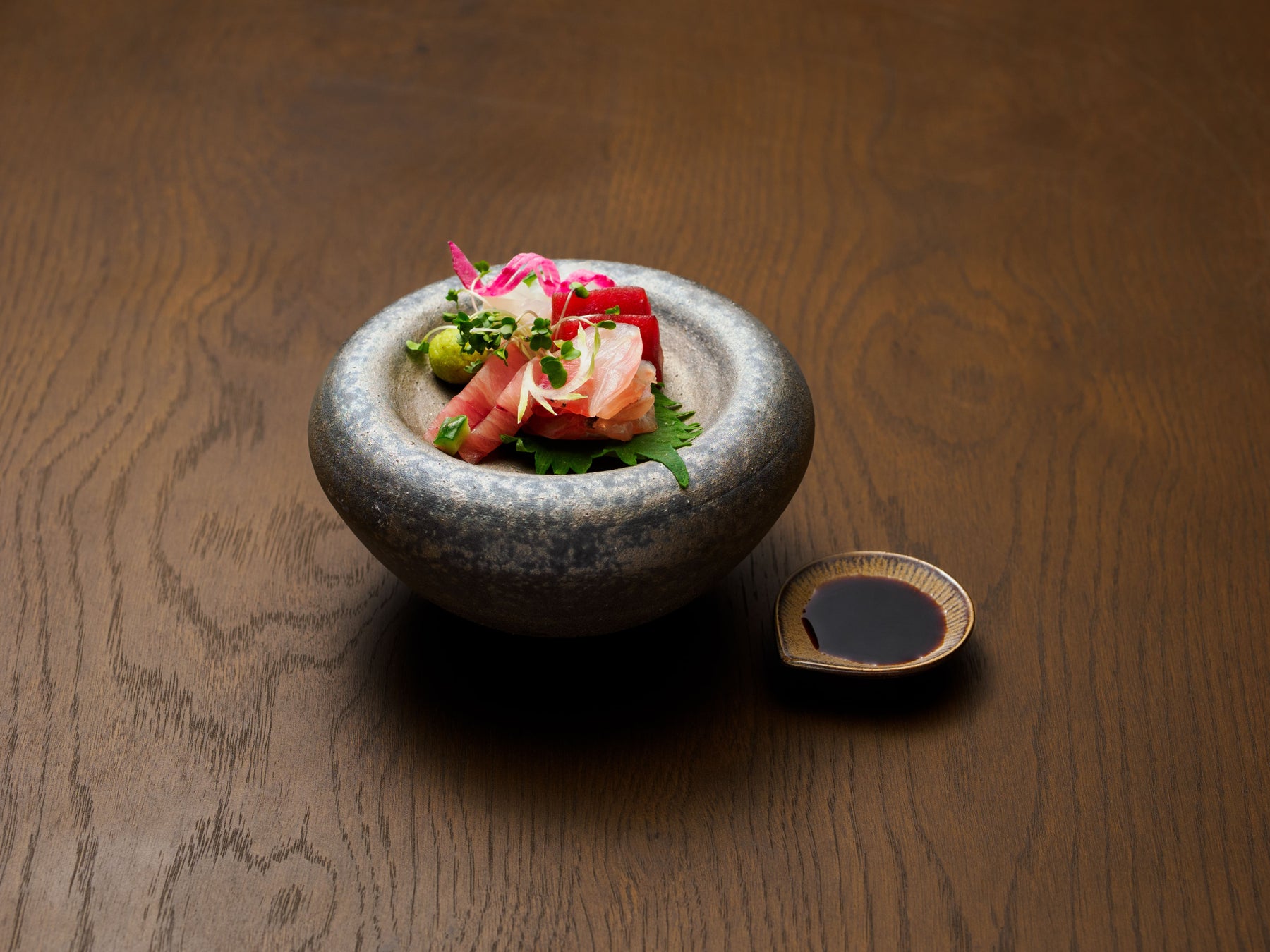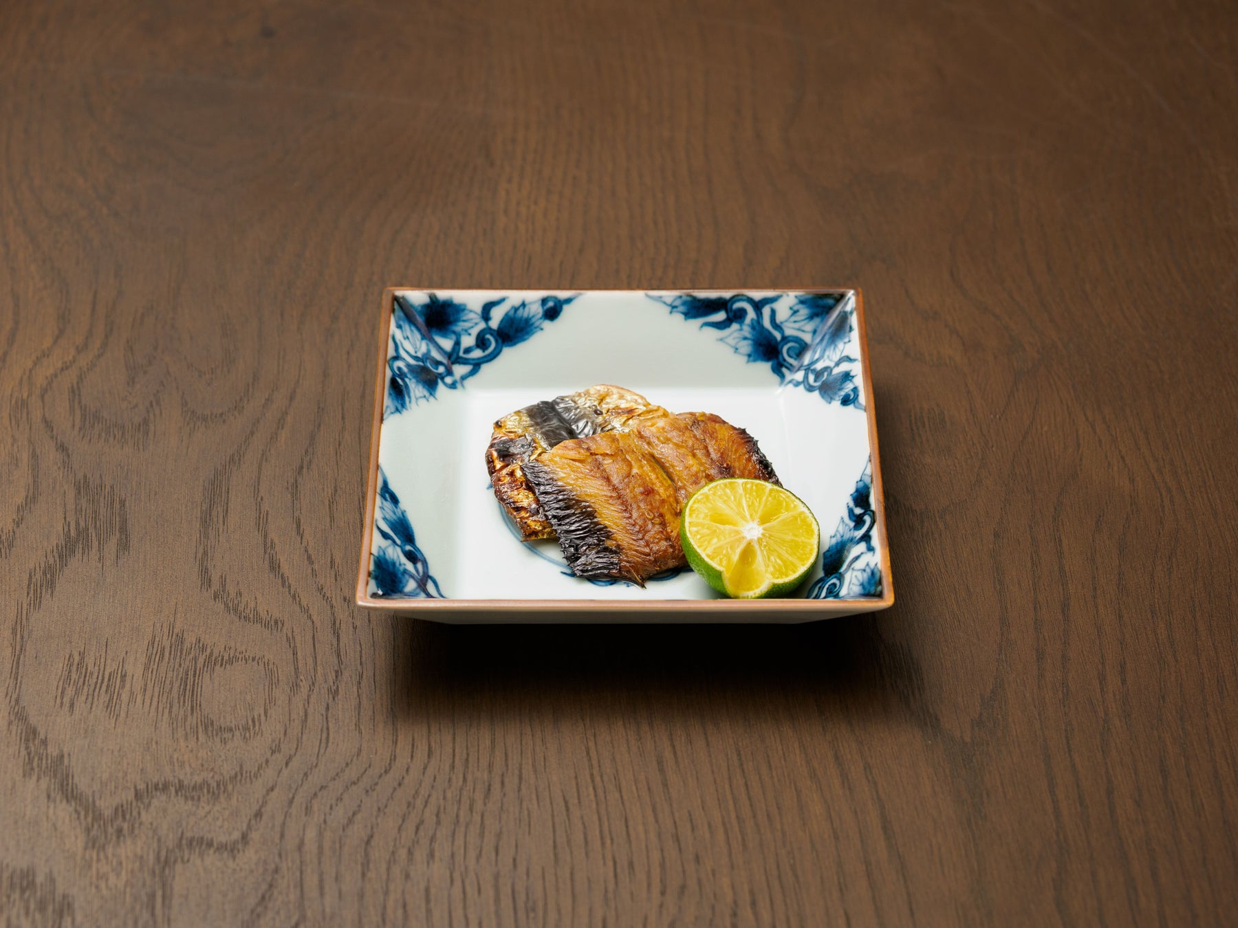 同店は地元で愛される町の魚屋でありながら、国内外の料理人からも厚い信頼を得る魚の名店で、その品質の高さから通常ではお取引が難しいほど評価を受けています。職人が丹念に仕上げた干物を炭火で香ばしく焼き上げる一皿は、赤坂で味わえる数少ない機会です。