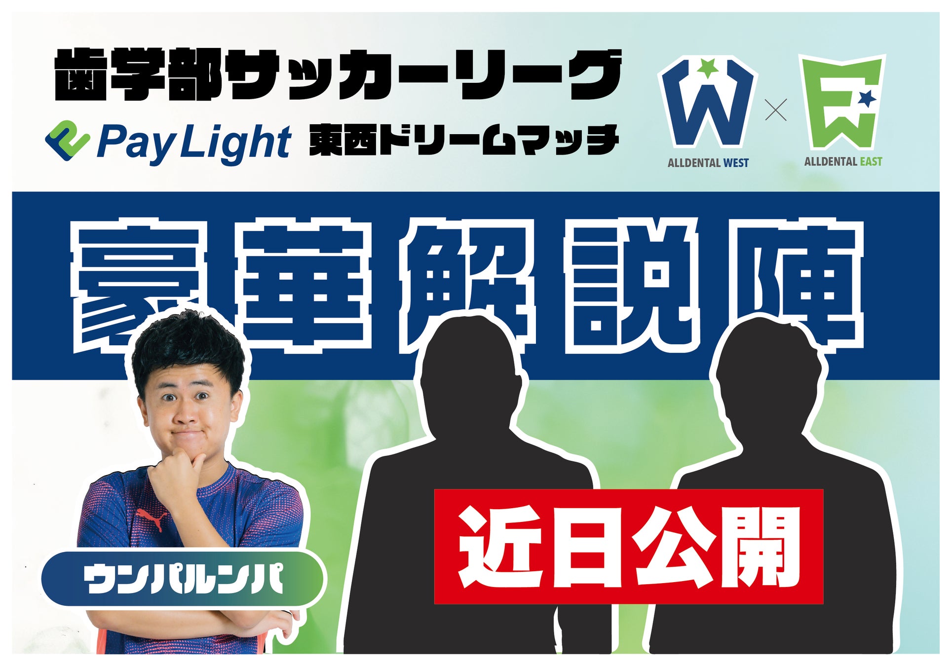 このワンゲームマッチは、全国の歯学部サッカー部の選手たちに特別な体験を提供し、彼らの夢を応援することを目的としています。さらにYouTubeでのオンライン配信には、みなさんお馴染みの豪華解説陣も決定しており、後日発表予定です。プロスポーツさながらの迫力ある試合展開を、臨場感たっぷりにお楽しみいただけます。