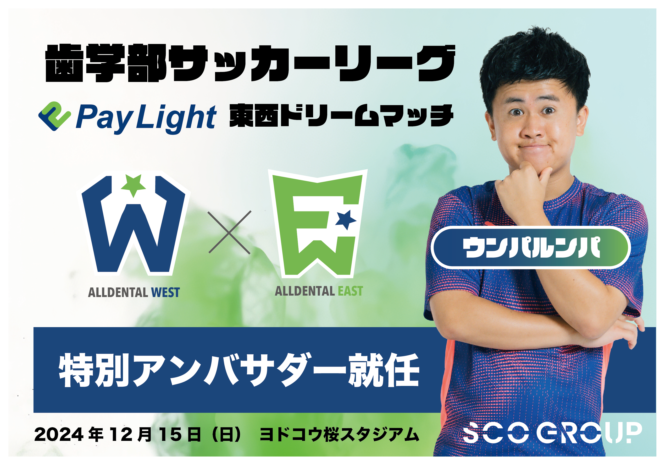ウンパルンパさんが特別アンバサダーに就任!歯学生サッカー夢のワンゲームマッチ!SCOグループ主催「Pay Light Dream Match」12月15日(日)開催決定!