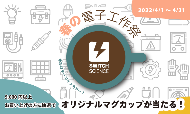 株式会社スイッチサイエンス(以下スイッチサイエンス、本社:東京都新宿区、代表取締役:金本茂)は、2022年4月1日より2022年4月30日までの1ヶ月の間の1回5,000円以上のお買い物でスイッチサイエンス オリジナルマグカップが当たるプレゼント企画に応募できる『春の電子工作祭り2022』を実施します。