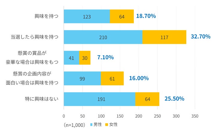 「当選したら興味を持つ」が32.7%と、当選が興味喚起の大きな要因に。