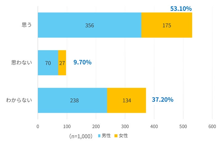 「コントロールされていると思う」と回答した人が53.1%と過半数を占め、懸賞の当選結果に疑念を抱く人が多いことが明らかになりました。「思わない」と回答した人は9.7%にとどまり、「わからない」とした人も37.2%に上ることから、多くの人が透明性に対する不安や判断の難しさを感じている様子が伺えます。「コントロールされている」と感じる背景には、企業が当選者を特定の条件で選んでいるのではないかという推測や、当選者公表の範囲が限られていることが影響していると考えられます。特に男性で「思う」と答えた割合が高い点から、性別による認識の違いも見逃せません。