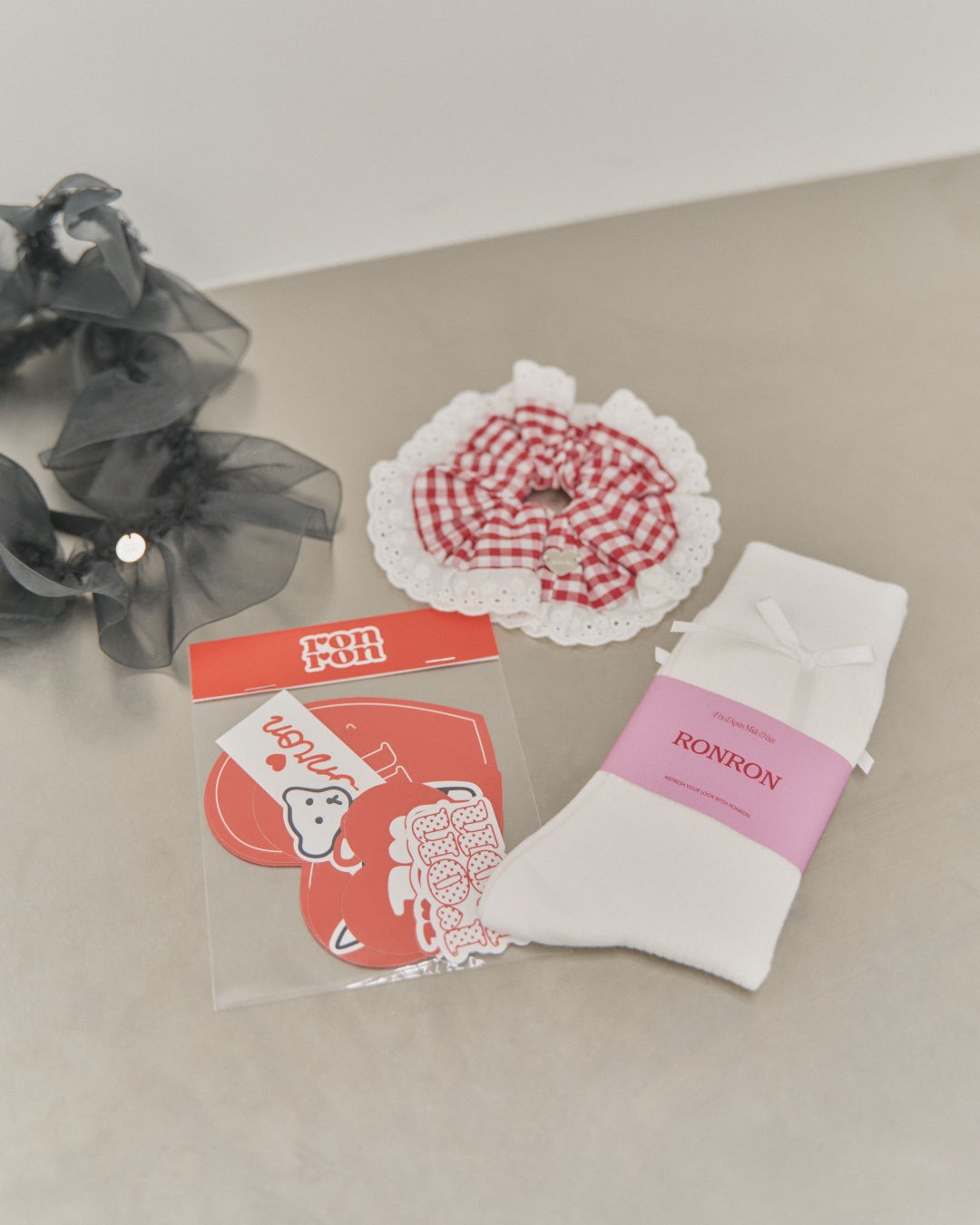 20,000円以上購入:CHARM SCRUNCHIE GINGHAM RED