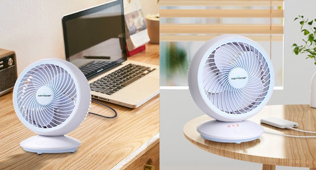 5000mAh大容量電池を採用し、フル充電の場合、弱風モードで約28時間の連続使用ができます。強風モードでも約6時間の連続使用が可能です。卓上扇風機本体には、優れた素材のABS樹脂を採用し、衝撃や高温に強く、耐久性が抜群です。