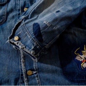 一着。長年の着用によって糸がほどけたような表情や、ヴィンテージウェアにみられるアタッチメントの風合いを研究し、丁寧に落とし込んでいます。