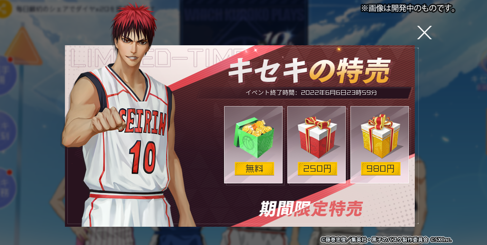 ※既に黒子テツヤと契約している方が黒子テツヤと再契約する場合は、ダイヤを獲得できます。