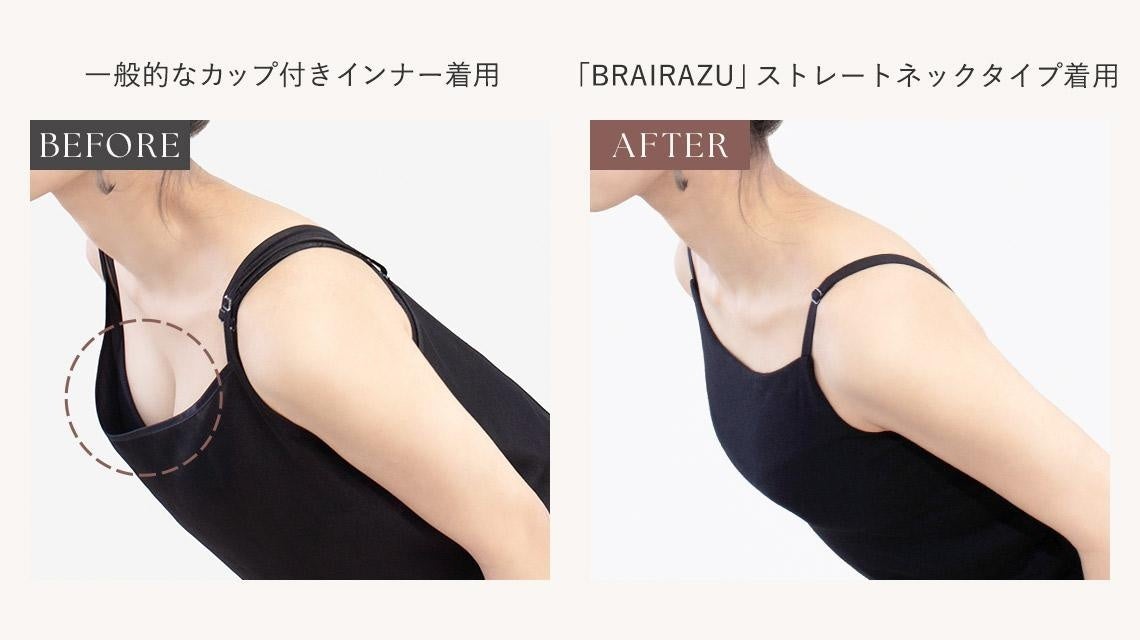 【累計販売枚数140万枚突破】1枚着るだけで、お出かけできるブラトップ「BRAIRAZU」からストレートネック型が登場。