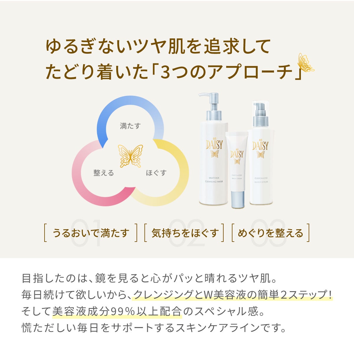 スキンケアを実感できるクレンジングウォーターと、すっと肌になじむ二つの美容液で、