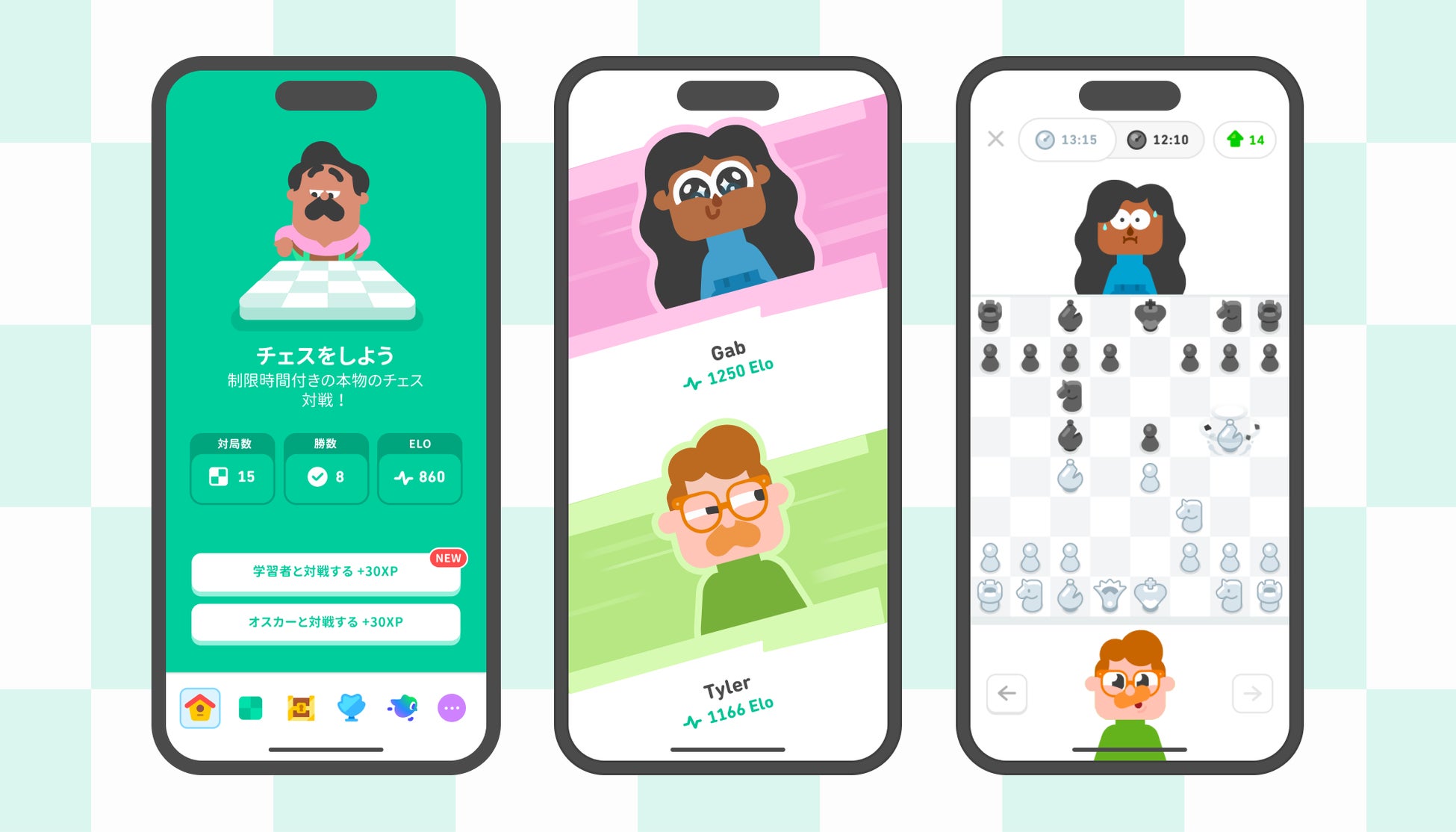 本機能により、学習者はDuolingoのキャラクター「オスカー」との対戦に加え、世界中のDuolingoの学習者とチェス対戦を楽しむことができます。今回のアップデートにより、より実践的で没入感のある学習体験を提供します。