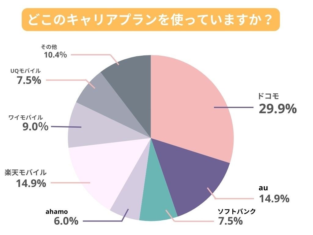 次いで「au」「楽天モバイル」と回答されている方が多く、格安SIMやキャリアの格安プランを利用されている方もいるようでした。