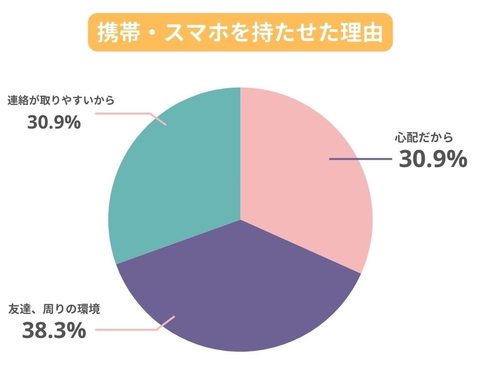 既にお子様に携帯・スマホを持たせている方へ、持たせた理由を聞いたところ「友達・周りの環境」と回答した方が38.3%と最も多い結果となりました。