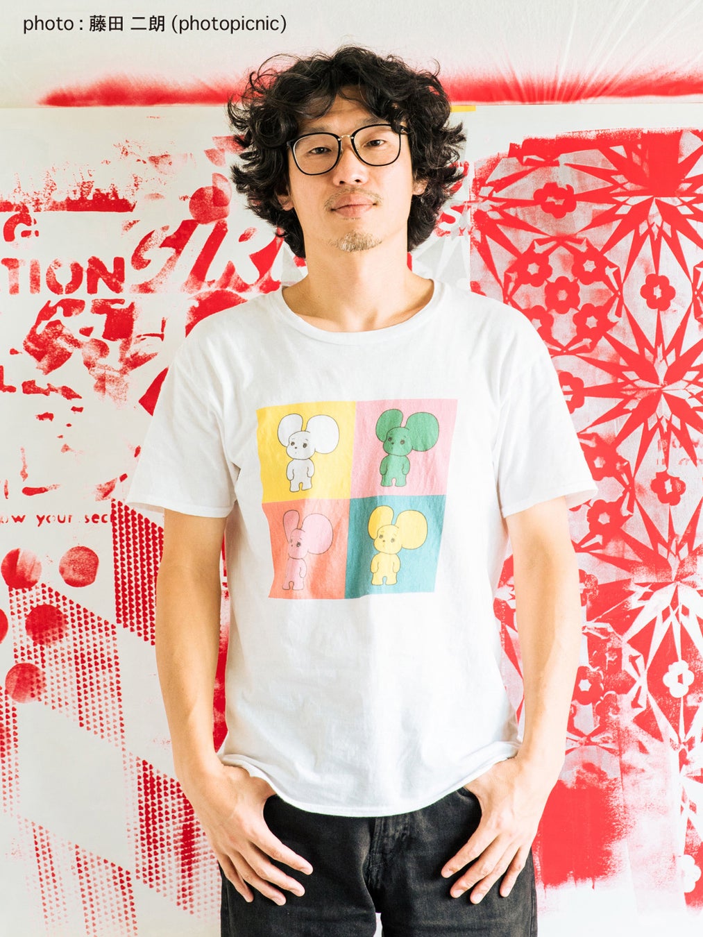 1974年、京都生まれ。武蔵野美術大学視覚伝達デザイン学科卒業。ステンシルを使用したスプレー、ローラー、エアブラシなどのペイント手法で媒体を問わず作品を多数制作し、国内外で作品を発表する。NIKE、TOYOTAなど有名企業とのコラボワークやホテル、店舗の壁画制作、その他メディア出演など多方面で活躍する。