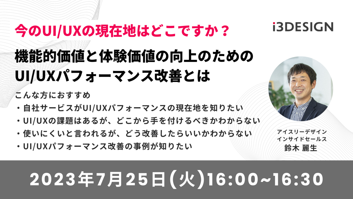 【7月25日(火)16時開催】「今のUI/UXの現在地はどこですか?機能的価値と体験価値の向上のためのUI/UXパフォーマンス改善とは」をテーマにオンラインセミナーを開催