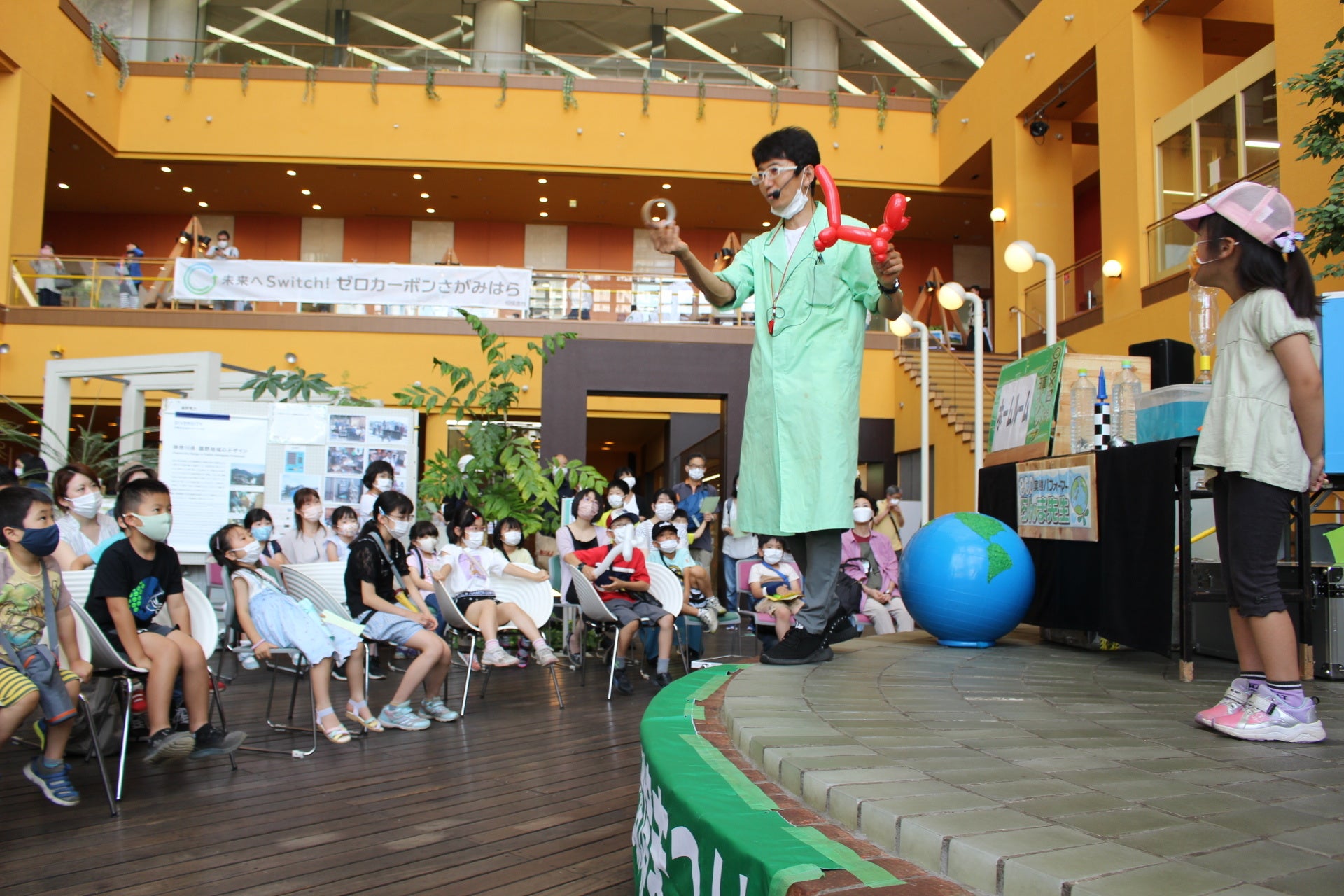 ステージでは環境パフォーマーとして環境省から唯一認定を受けた「らんま先生」による、『エコ実験教室』と、森とクワガタを愛する昆虫ヒーロー「クワガタ忍者」による『クワガタ忍者ショー』を実施し、来場者参加型の楽しいショーに大人も子どもも大いに盛り上がりました。また、小・中学生向けの環境をテーマにしたプログラミングコンテスト『さがみはらエコ・プロちゃれんじ』受賞者による発表など、多彩なプログラムを展開しました。