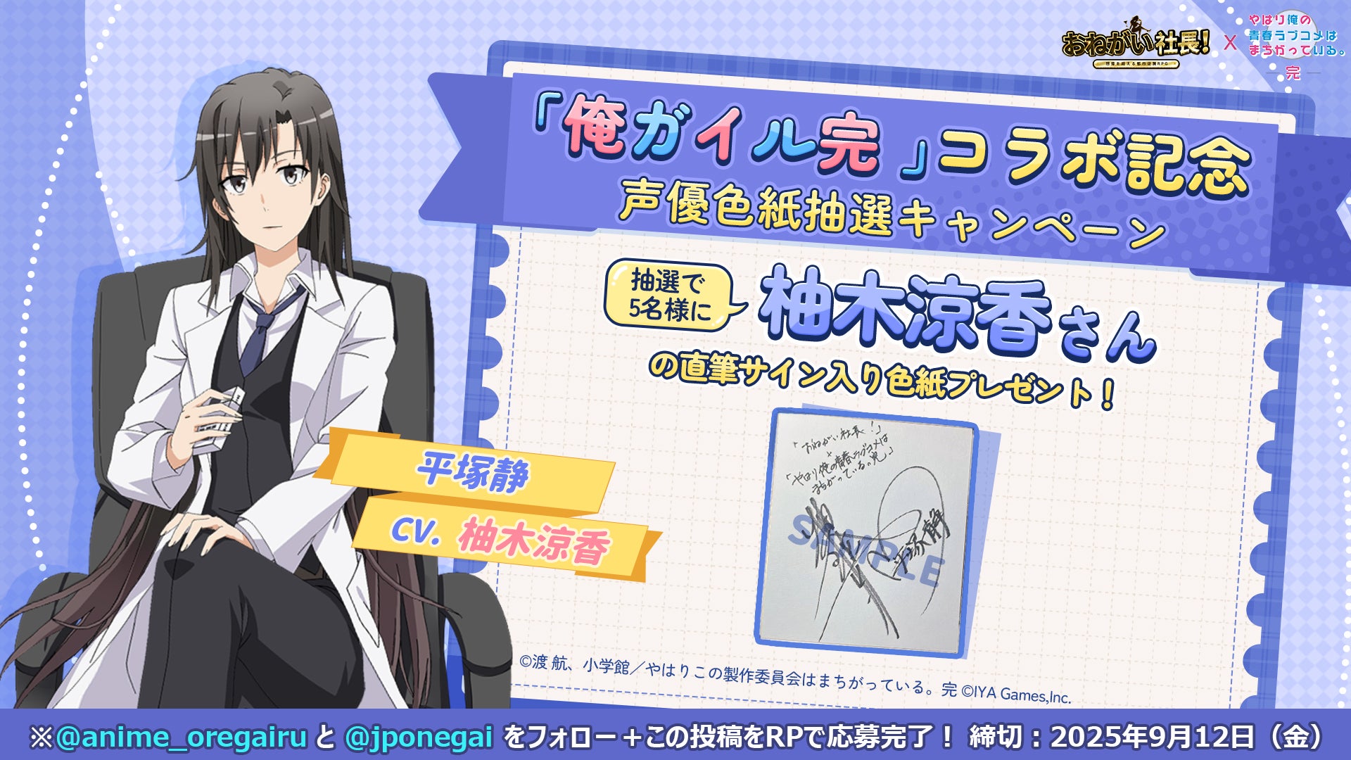 『おねがい社長!』×アニメ『やはり俺の青春ラブコメはまちがっている。完』 コラボイベント 8月30日(土)より開催!
