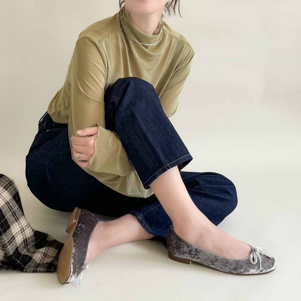 秋冬ファッションを足元から【farfalle/ファルファーレ】ベロアの新作バレエシューズ<セシル>はスクエアトゥでトレンド感をプラス。