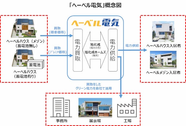 1.2018年に参加を表明したRE100において、グループ会社が運営する電力事業「ヘーベル電気」を介して、太陽光発電システムを導入後に卒FITを迎えた顧客から電力を買い取り、事業活動で消費する電力に充当しています。当初達成目標年だった2038年を大幅に短縮した2023年度中に達成を目指しています。