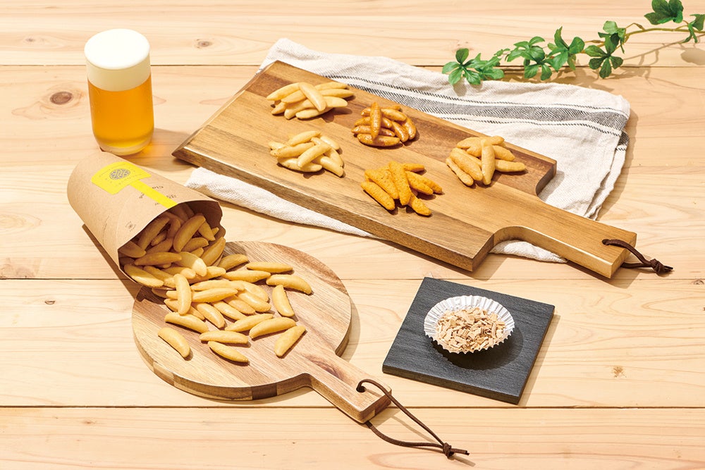 夏のアウトドア、BBQやキャンプからインスピレーションを受け、約3年をかけて誕生した『燻製かきたねシリーズ』。燻製との相性が良く、食感の違いも楽しめる5種類のフレーバーを厳選しました。数あるスモークチップの中から、それぞれのフレーバーに合わせて選んだのは「さくら」と「ブナ」。燻製することで風味がぐっと深まり、ひと粒噛みしめるごとに奥深いスモーキーな香りが広がります。夜風を感じながらベランダで味わえば、まるでキャンプ気分。そんなひとときを楽しめるかもしれません。