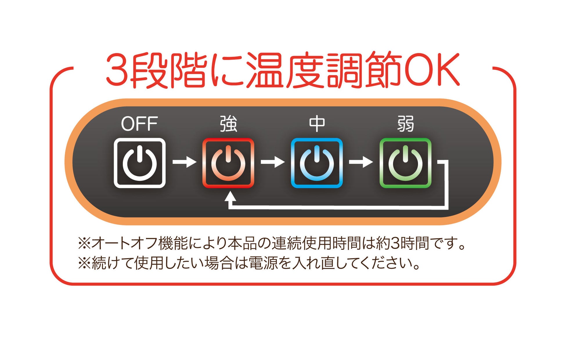 - 温度は3段階に調節可能!