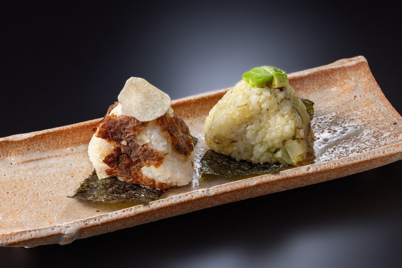 (牛肉・フォアグラ・トリュフ入りおにぎり、アボカド・チーズ入りおにぎり)