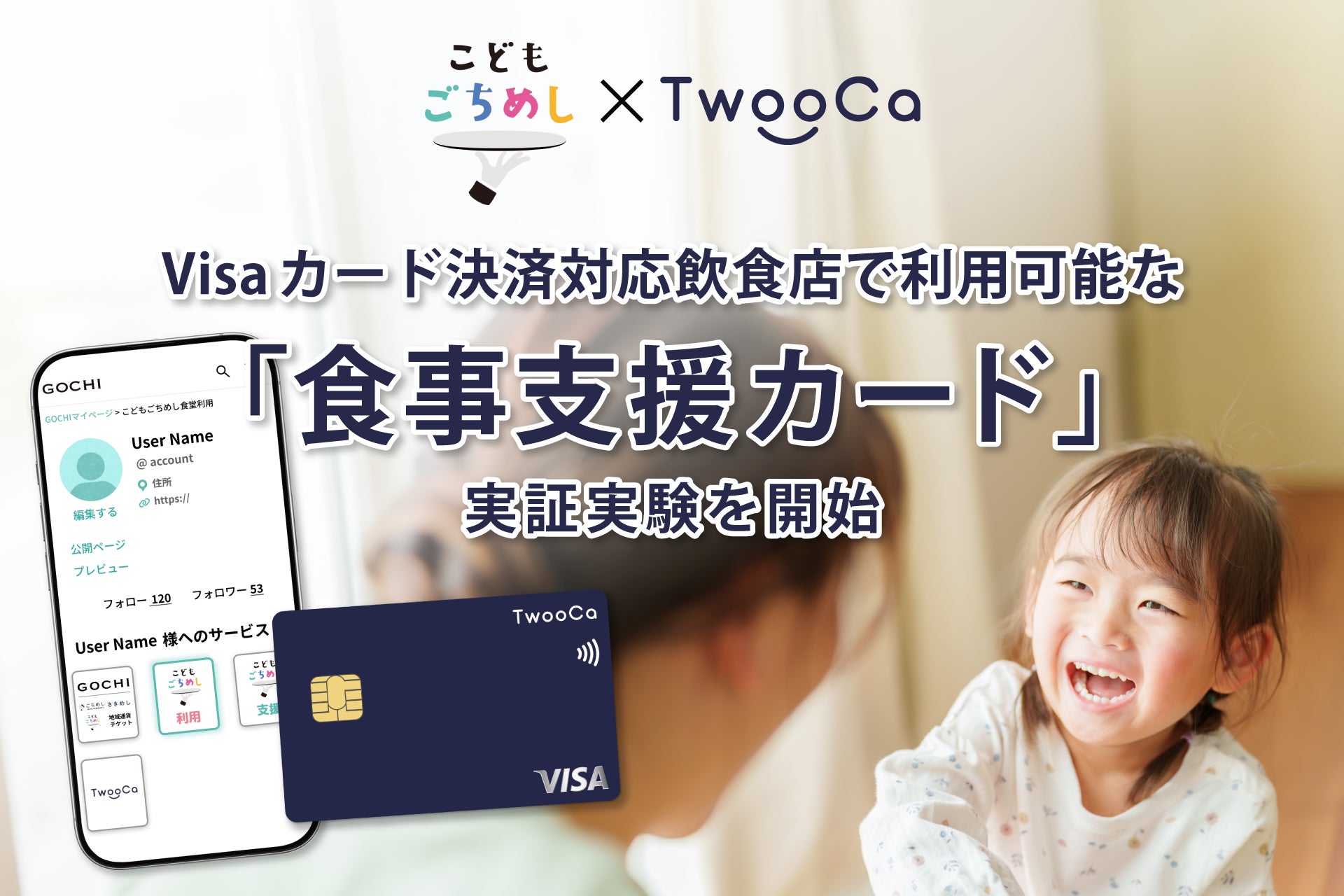 本実証実験では、KFPおよびGigiとの連携のもと、当社が提供するTwooCaサービスを活用することで、従来はこどもごちめし加盟店に限定されていた利用店舗をVisaカード決済対応飲食店へと拡張しました。
