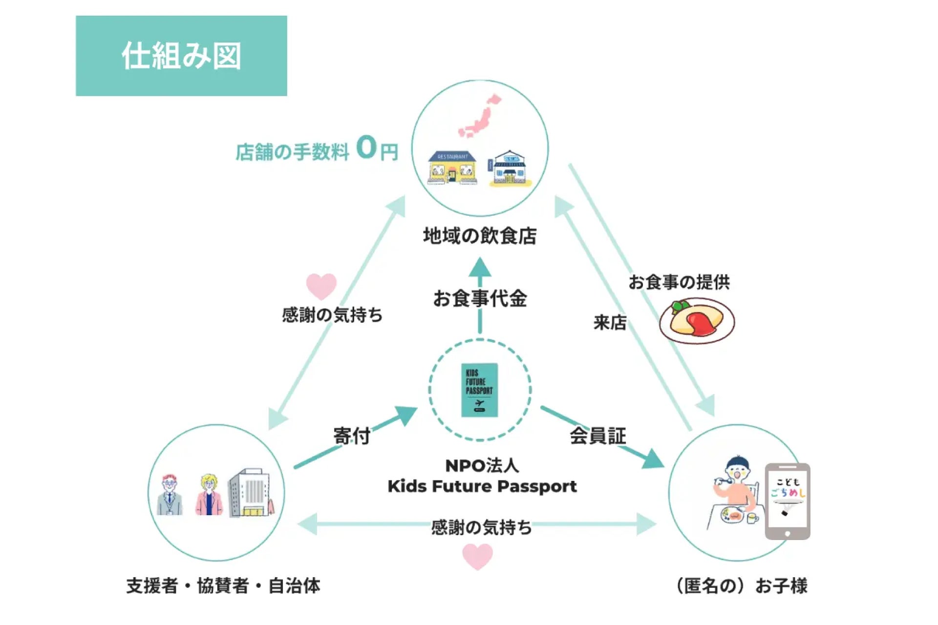 KFPでは、IT・デジタル技術を活用した“子ども食堂のDX化”を推進し、三方よしの仕組みを取り入れた「こどもごちめし」によって、子どもたちに栄養ある食事を届ける持続可能な仕組みを構築しています。