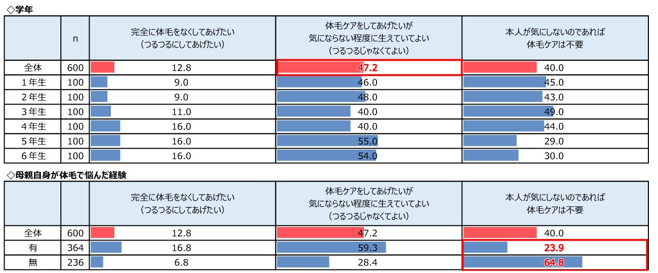 小学生女児の母親600名へお子さまの体毛事情のアンケート調査 小学4年生で「お手入れしている」または「気になっている」が半数超え