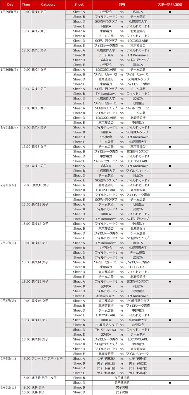 -男子:SC軽井沢クラブ、札幌国際大学、北見協会、宮城CA、チーム萩原、TM Karuizawa、岡山CA、ワイルドカード1、ワイルドカード2