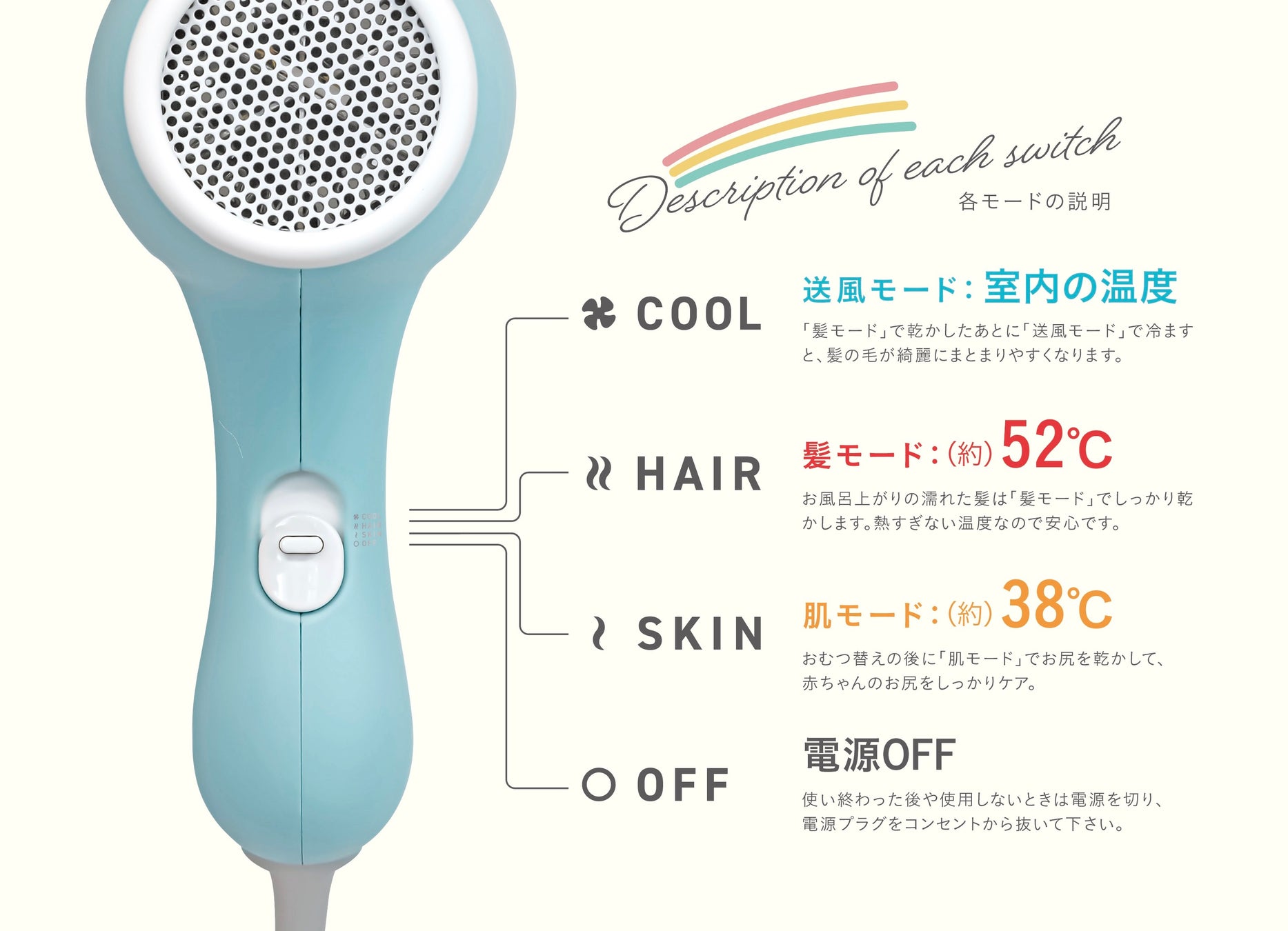 【新商品】お子様のデリケートな髪の毛や肌に使える低温設計のドライヤー