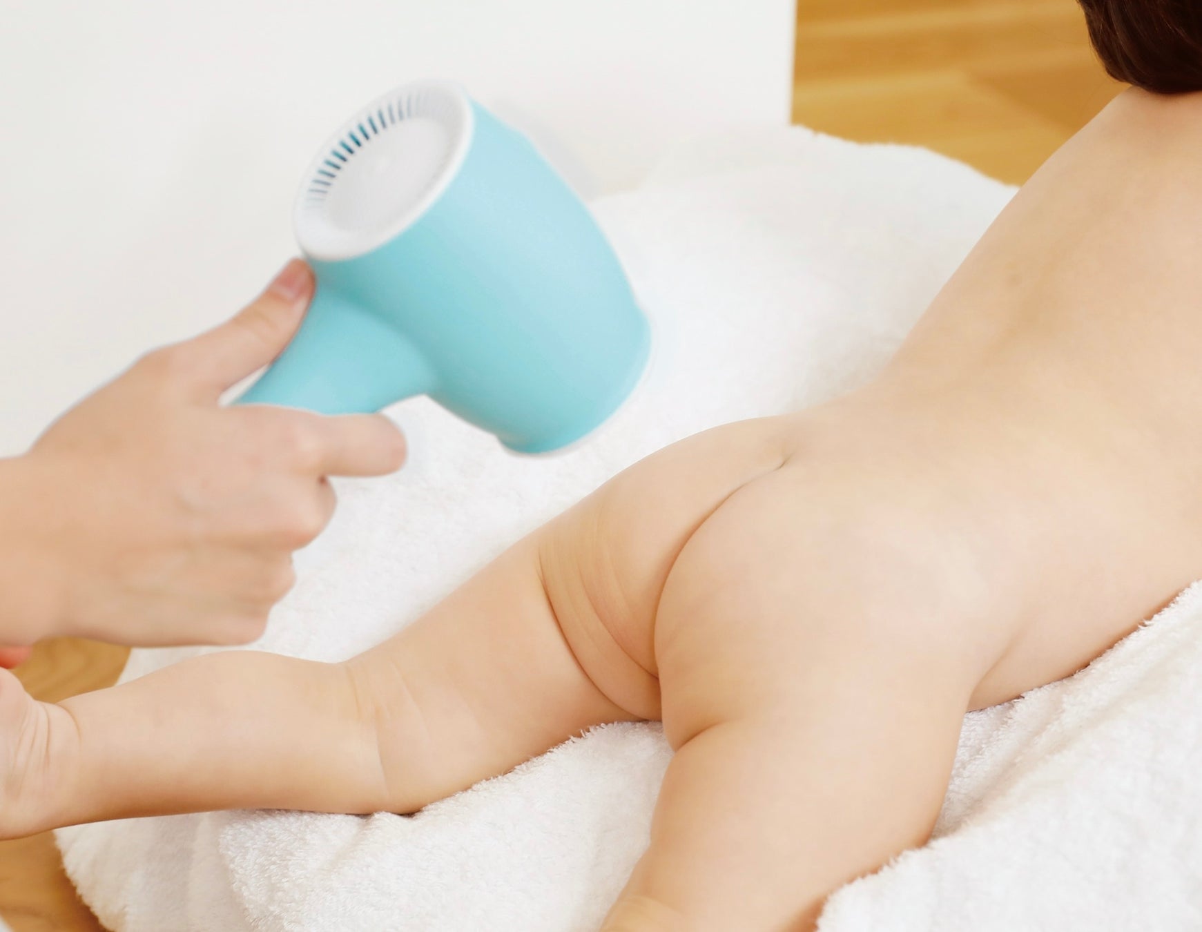 おむつ替えのとき、お尻をを「肌モード」で乾かしたあと新しいおむつを履かせることで、おむつかぶれしやすい赤ちゃんの肌をケアすることが出来ます。