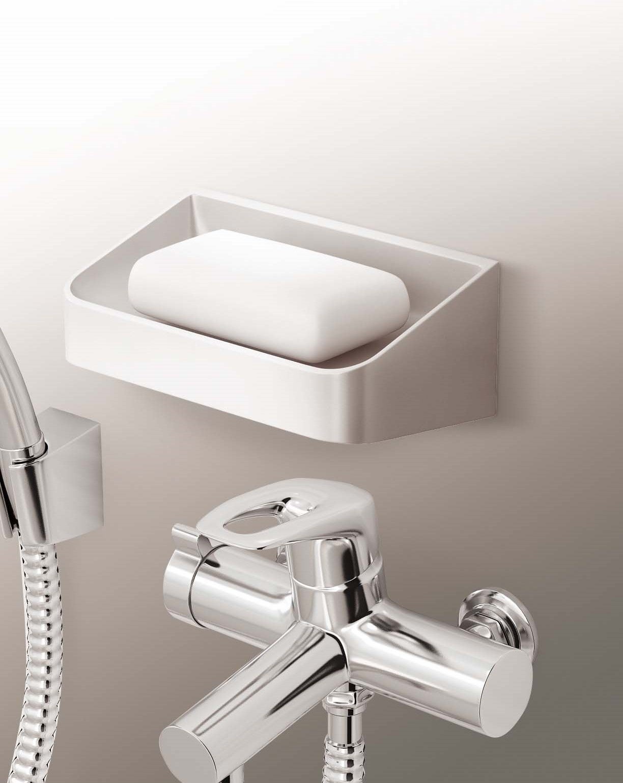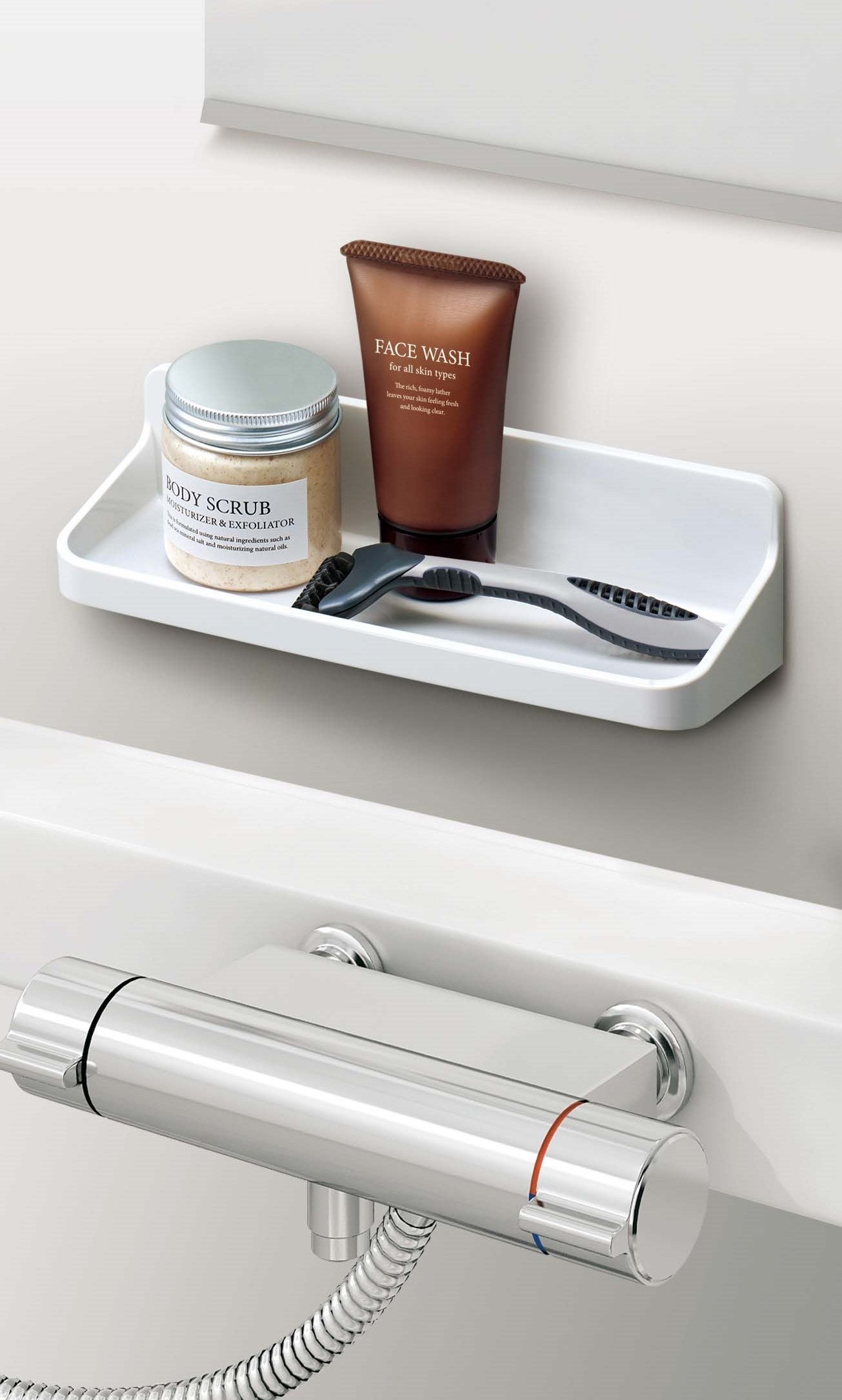 また、商品の形状は無駄のないスタイリッシュなフォルムを目指し、ホワイトカラーでどんな浴室にもよくなじみます。