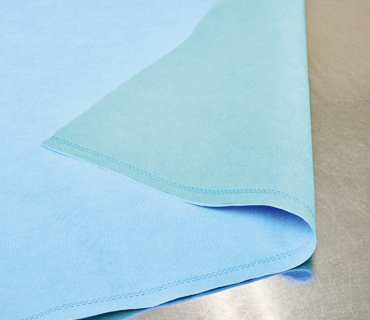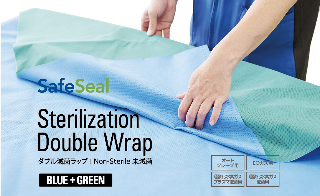 「セーフシール ダブル滅菌ラップ」は、SMMS 4層構造のブルーとグリーンの滅菌ラップを超音波で圧着しています。そのため、一度の作業で二重包装が可能になり、作業時間を大幅に短縮できます。さらに、柔らかくしなやかな生地なので折り畳みやすく、作業性に優れます。感染対策、作業効率の面で利便性の高い製品です。