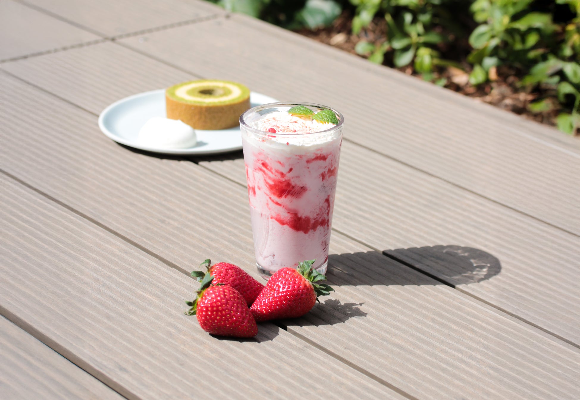 3F「京ばあむCafe」では、京都府八幡市の「おさぜん農園」より直送した旬のいちごを使用した期間限定のパフェ、ドリンク、ジェラートを発売します。