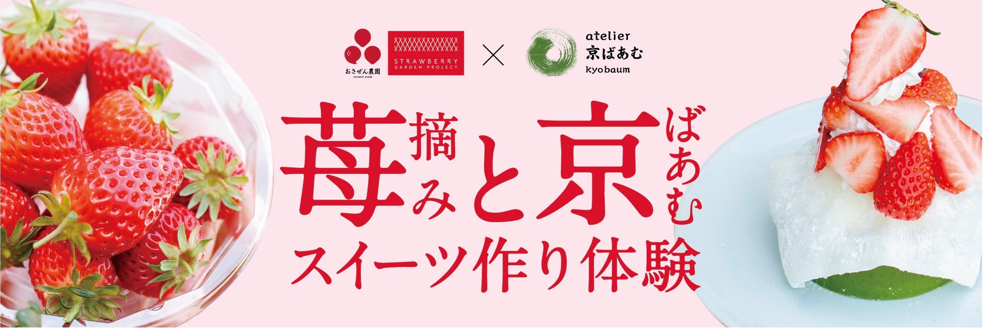 京都銘菓「つぶあん入り生八つ橋 おたべ」や「京ばあむ」などを製造・販売する株式会社美十(本社:京都府京都市、代表取締役社長CEO:酒井宏彰)は、 2025年2月1日(土)より、京都市南区に展開するatelier(アトリエ)京ばあむにて「京ばあむ」と旬の「いちご」を使用した「苺摘みと京ばあむスイーツ作り体験」を開始します。また同時に、3Fの京ばあむCafeにて「いちごパフェ」「いちごミルク」「いちごジェラート」を発売します。