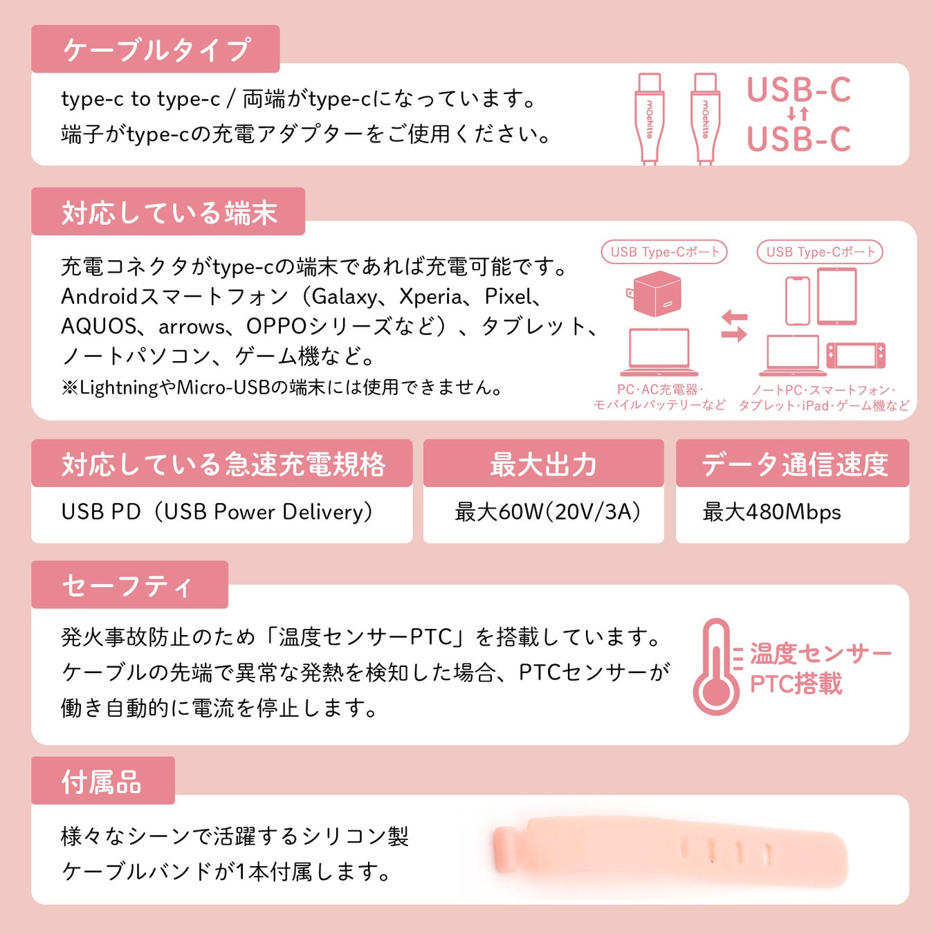 【mochitto -もちっと-】Type C to C シリコン ケーブルの仕様