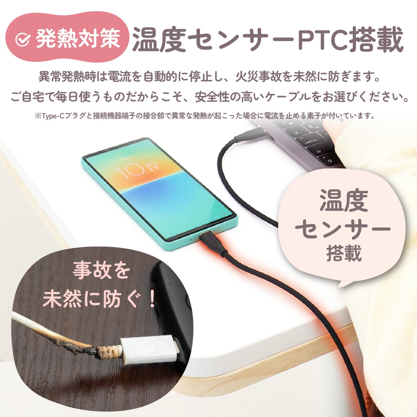 【mochitto -もちっと-】タイプC to タイプCケーブルはオシャレな見た目だけでなく、機能性にもこだわっています。