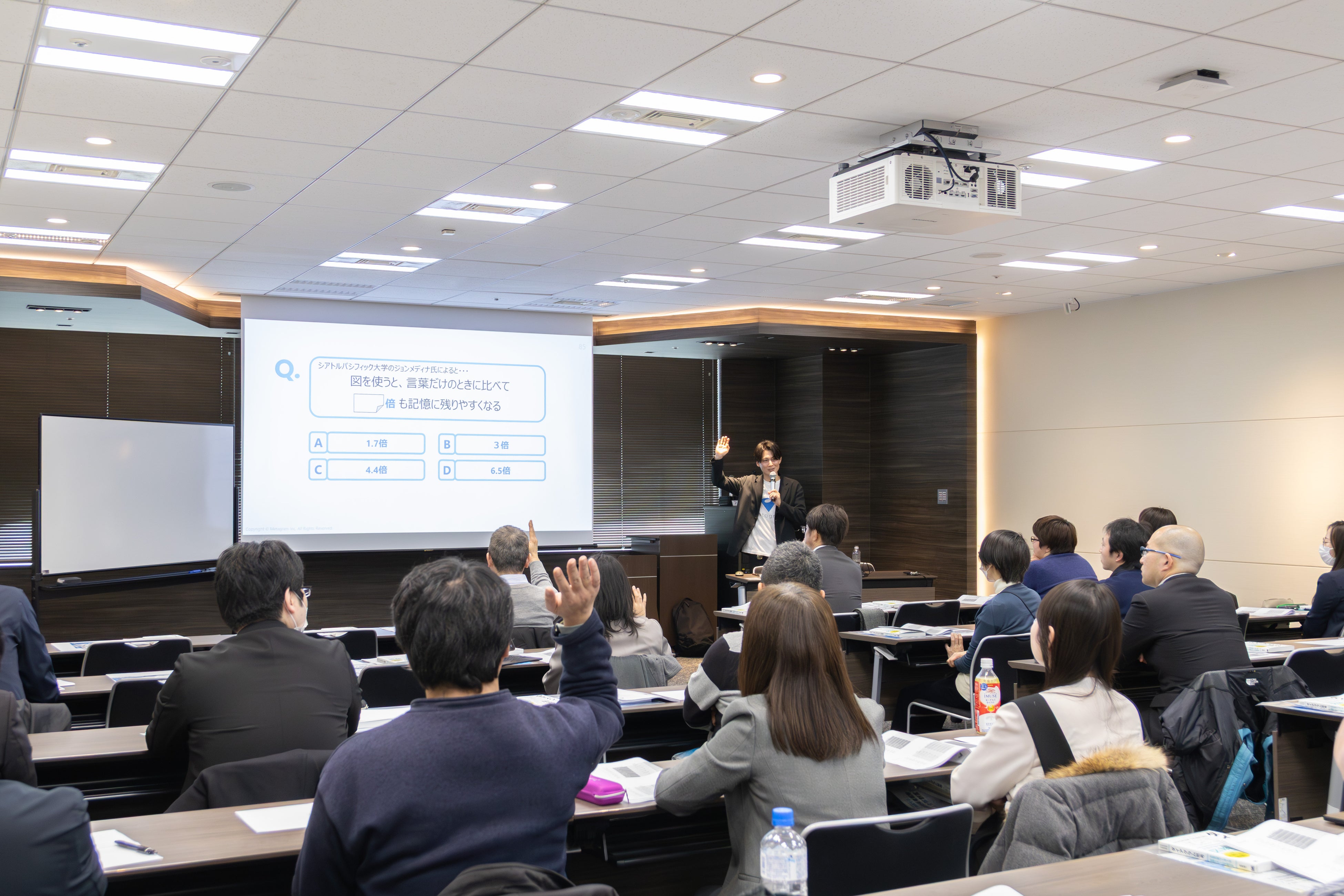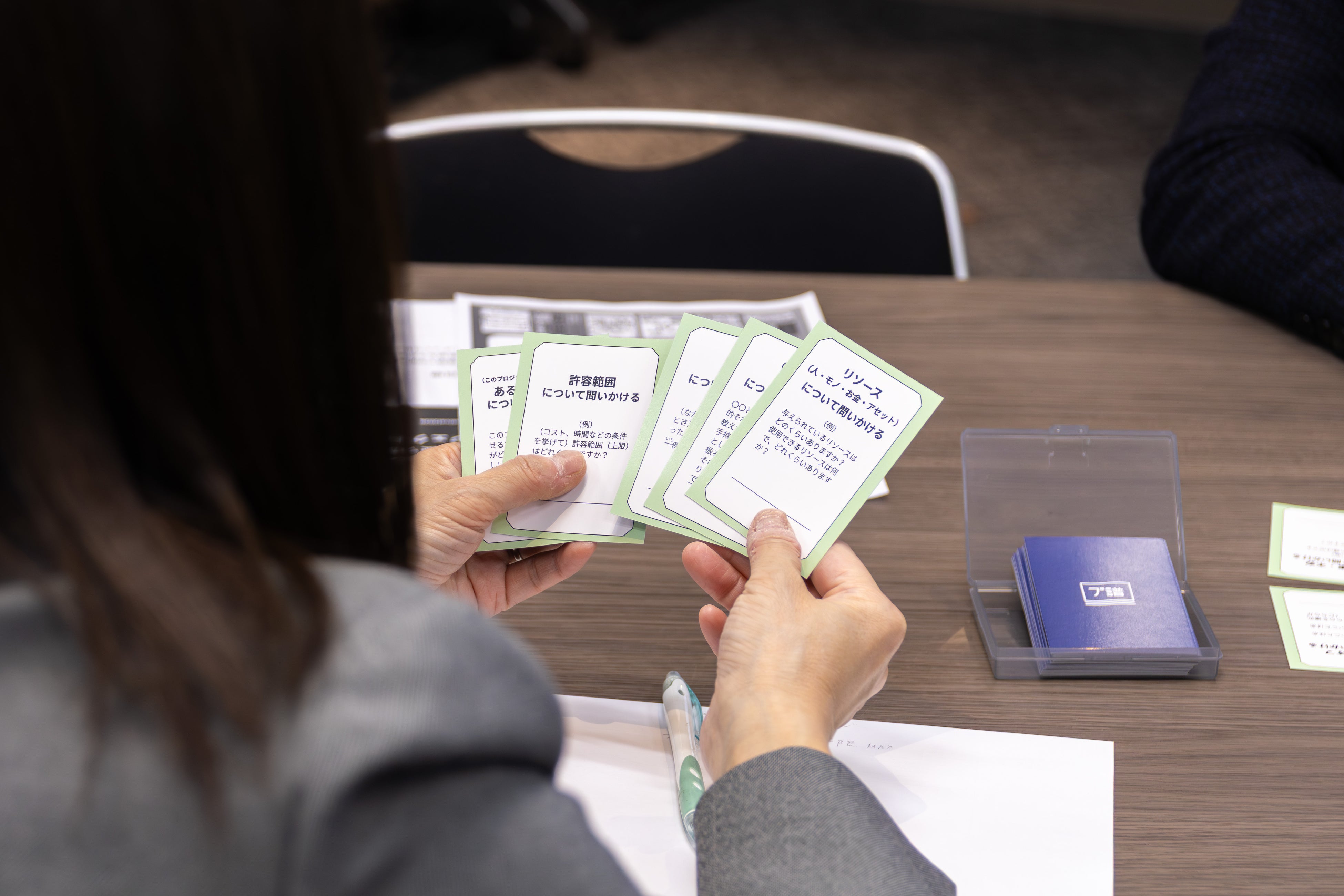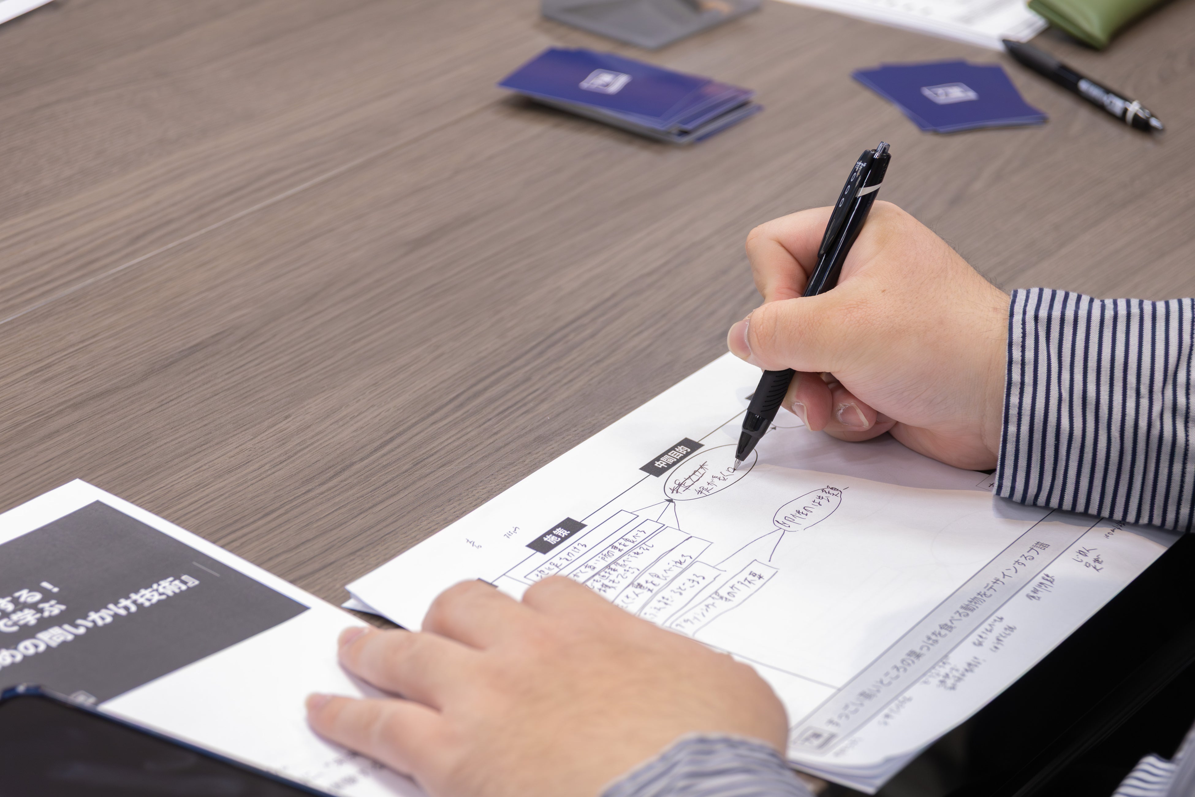 プロジェクトに携わる方に向けて、顧客のあいまいな要望を問いかけによって明らかにしていく手法をグループワークやゲームを通して学びました。