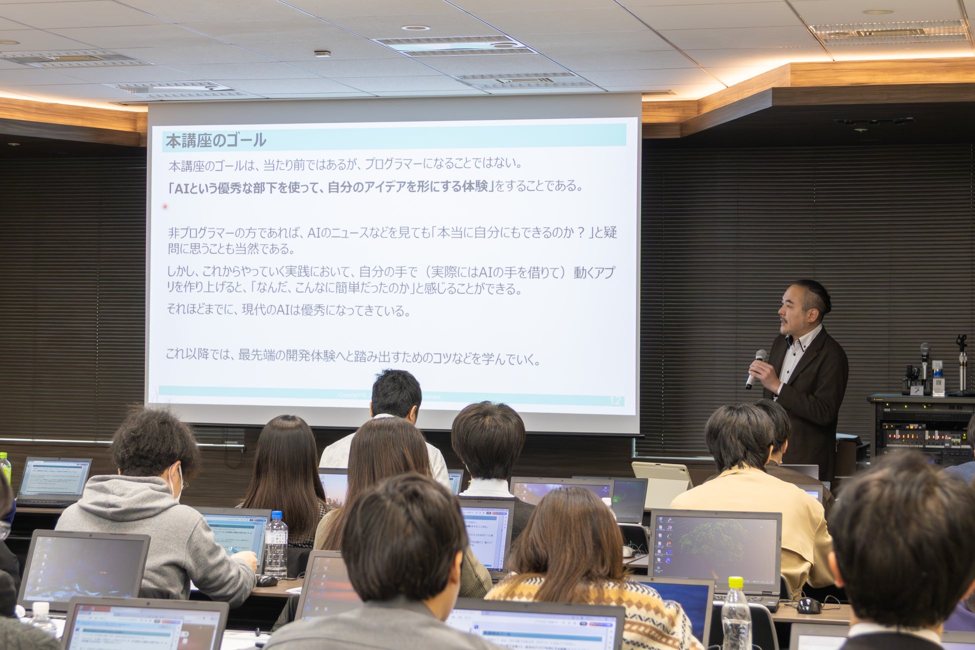 本講座は、プログラミング未経験者やAIを導入したいものの具体的な活用イメージが湧かない方を対象に、「AIという優秀な部下を使いこなし、自分のアイデアを形にする」ことを目的として開催しました。