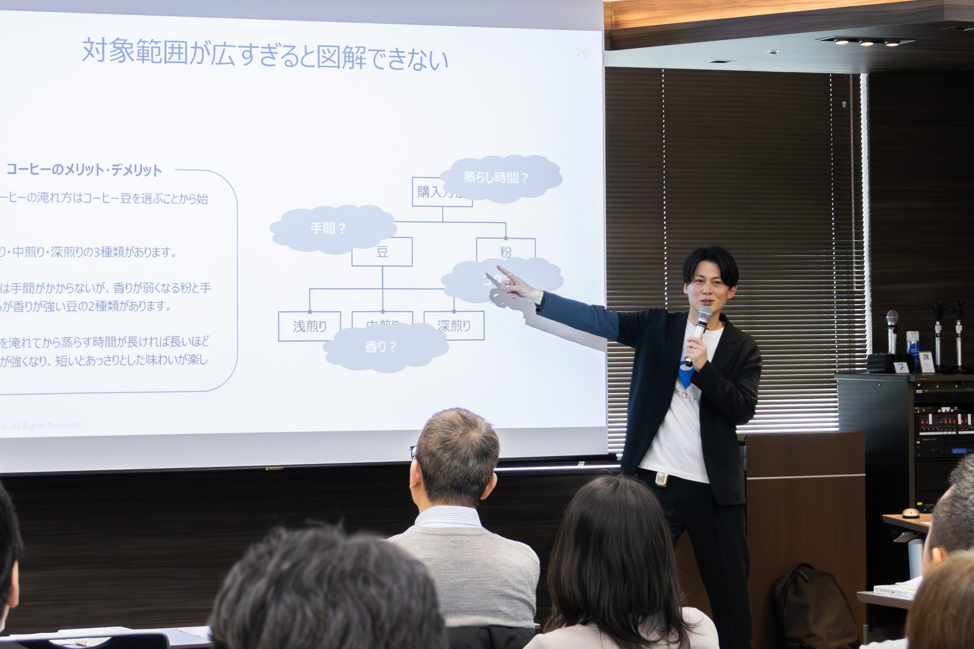 情報を「わかりやすく」「シンプルに」「伝えやすく」することを目的に、あらゆるモノゴトを図解して整理する思考法『ダイアグラムシンキング』のスキルを、ワークを通して習得しました。