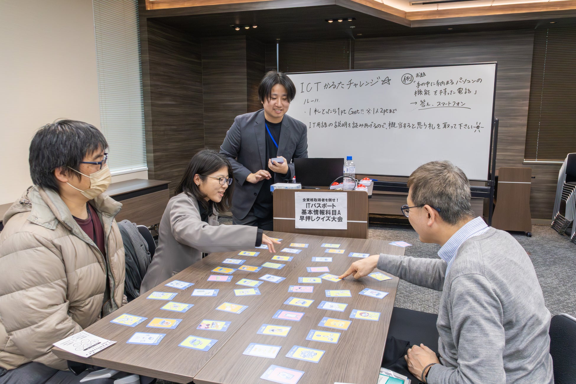 イベントルームでは「学び倒す」というITFestivalのテーマに基づき、IT知識やタイピングで講師に挑むゲームや、ICTかるたを使ったレクリエーションを実施。講座やゲームへの参加数に応じて集められるポイントを獲得した参加者には、書籍をプレゼントしました。