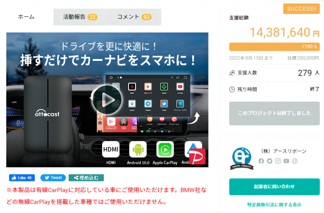 - 前作もGREEN FUNDINGで大ヒット