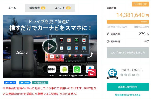 2022年12月20日(火)より、車載ガジェット「OTOTREE」を応援購入サイトMakuakeにて実施します。プロジェクトの実施に伴い、「OTOTREE」に関する情報を取得できる事前登録を開始しました。