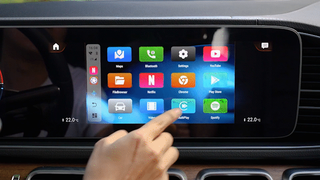 Android10.0を搭載し、スマホとカーナビをワイヤレスで接続する車載系AI BOXです。車のUSBポートに差し込むだけで簡単にカーナビをAndroidスマホ化!