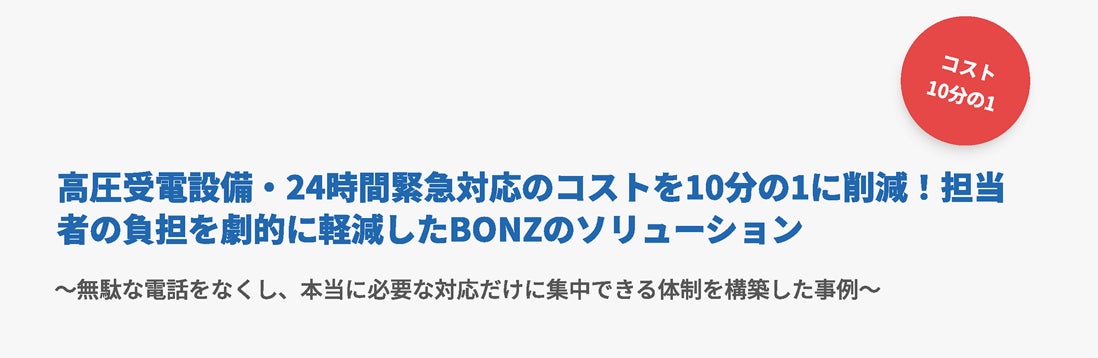 株式会社ボンズコミュニケーション(本社:神奈川県横浜市、代表取締役社長:山本篤史)は、高圧受電設備の管理会社が直面していた24時間緊急対応の課題を解決した事例を発表しました。