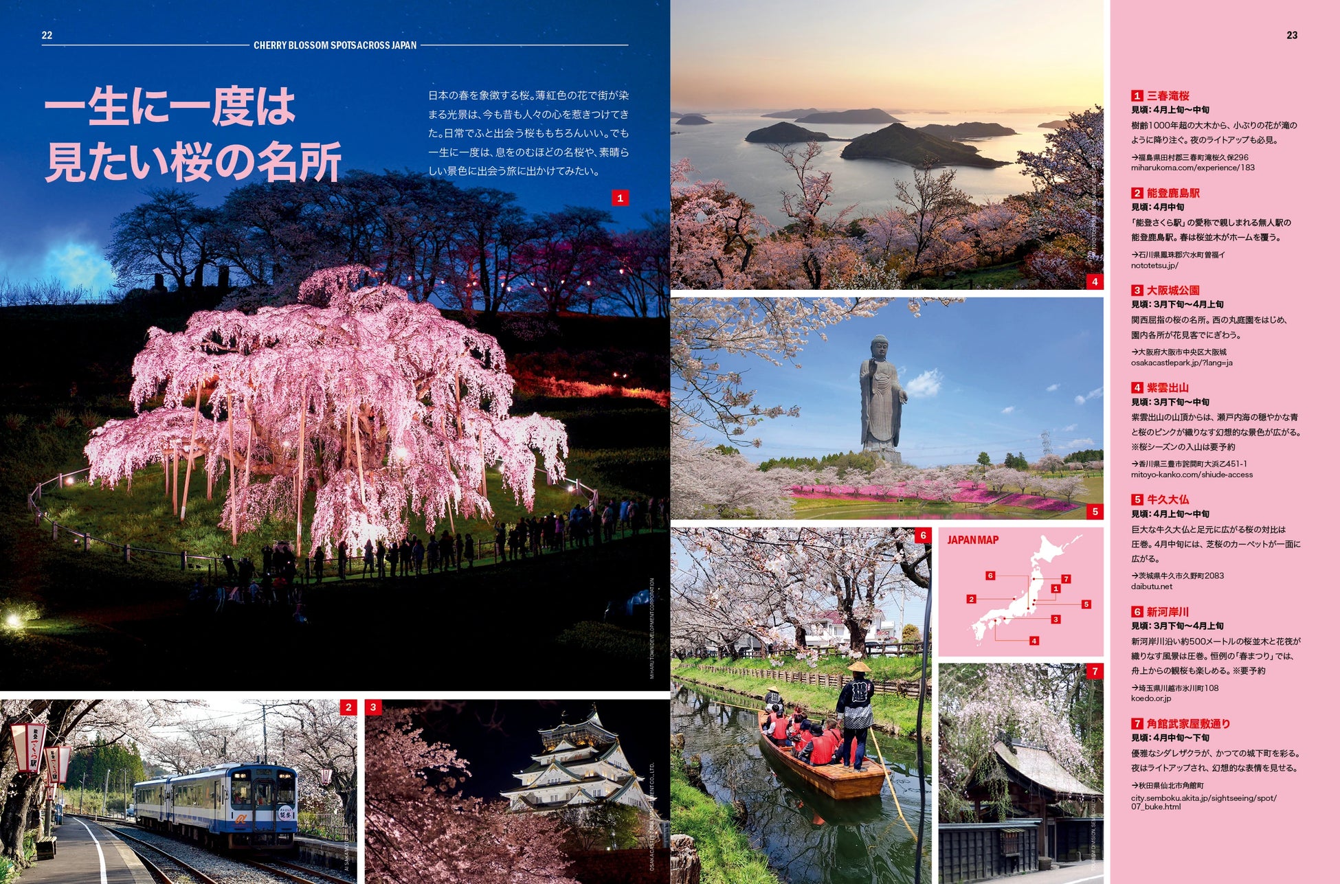 そのほか、一生で一度は見たい桜の名所として日本ならではのロケーションと組み合わさった絶景の桜スポットを特集。タイムアウトマーケット大阪1周年記念パーティーの詳細レポートや、タイムアウト東京編集部が最新トレンドを踏まえて選んだ「今、日本で行くべきベストスポット10」など、新規オープンのヴェニューから注目の文化施設まで、旅行者にも地元の方にも新たな発見となる情報をお届けします。